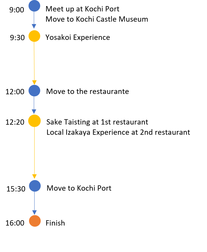 From Kochi Port, travel by private vehicle into the historic castle district for a hands-on Yosakoi dance experience at Kochi Castle Museum. Dress in colorful costumes, practice with naruko clappers, and capture photogenic moments with the castle as your backdrop.